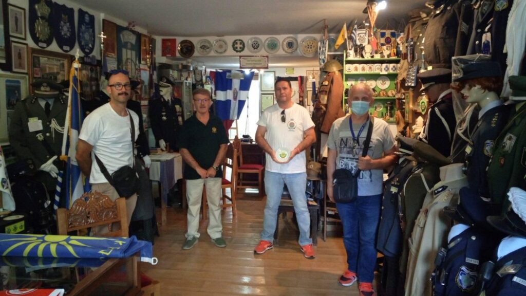 Στους επισκέπτες μας προσφέρθηκε από τον κ. Δημήτριο Καλλιαντζή ο θυρεός του Μουσείου ως ελάχιστο αντίδωρο μνήμης, ο οποίος εξέφρασε τις θερμές ευχαριστίες του στους Αστυνομικούς από τη Φλώρινα για την προσφορά μίας θερινής στολής της Ισραηλινής Αστυνομίας.